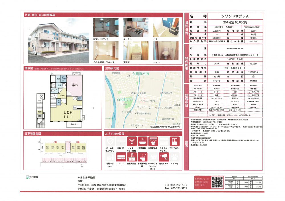 - R7.10.20メゾンドサブレA204 1LDK(石和町井戸ご入居応援キャンペーン仲介料50%OFF